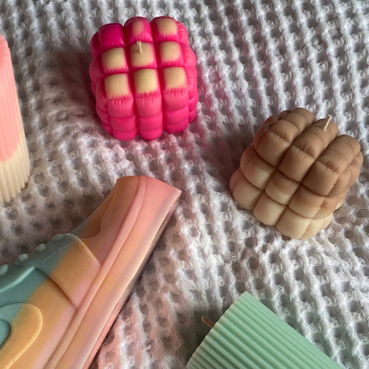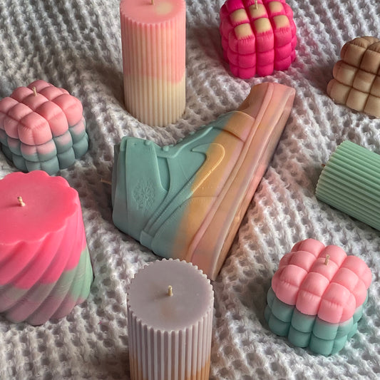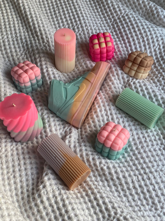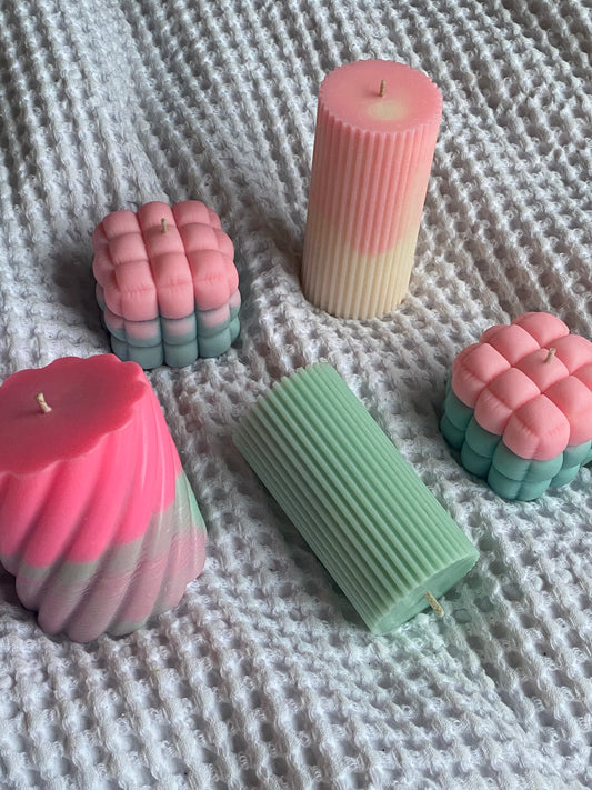 mallow candle | pink, blue + purple